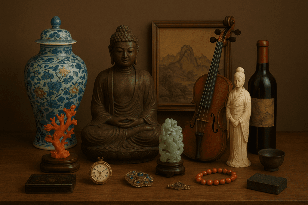 Passionné par les objets d’art et les antiquités, j’achète et expertise des pièces très variées : tableaux anciens, bronzes, jades sculptés, objets d’art asiatique, bijoux anciens, argenterie, montres de collection, instruments de musique, céramiques ou objets de curiosité.